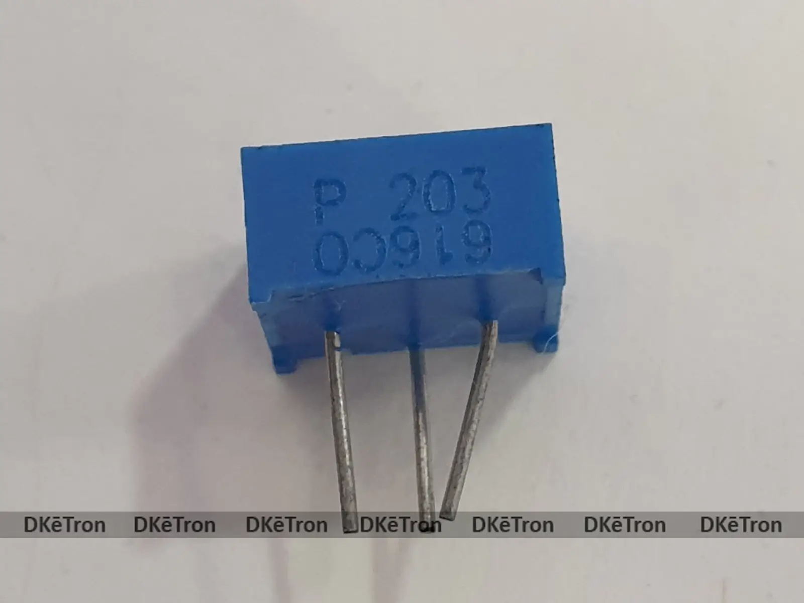 It is a 20k Ohm Variable Resistor (3386 Package) – Trimpot Trimmer Potentiometer. The potentiometer is easy to mount on a PCB and can be adjusted using a screwdriver. This potentiometer has a single turn, which can be used to preset a value.